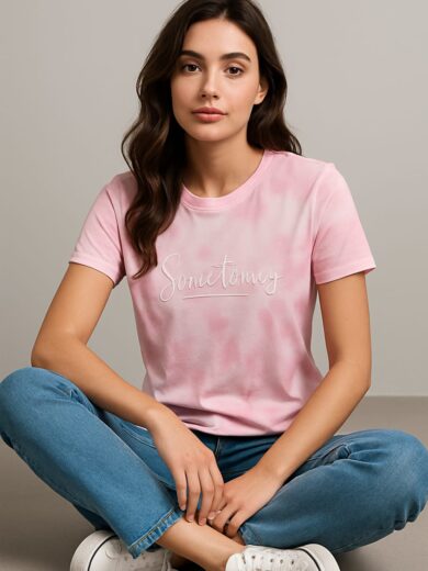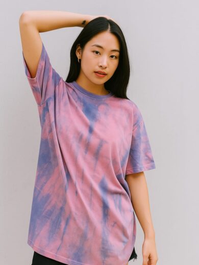 Art Illusion | Pink & Blue Tie-Dye Oversized T-Shirt for Women (Pastel Aesthetic)