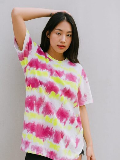 Art Illusion | Pink & Yellow Tie-Dye Oversized Cotton T-Shirt