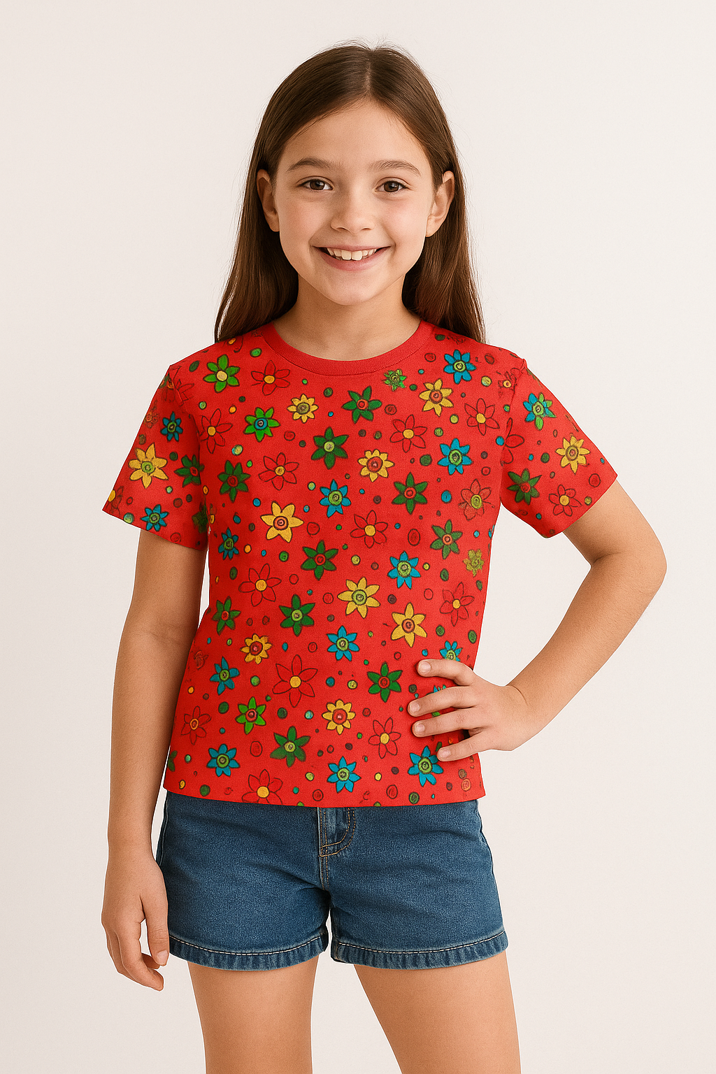 HANDPAINTED RED FLORAL T SHIRT