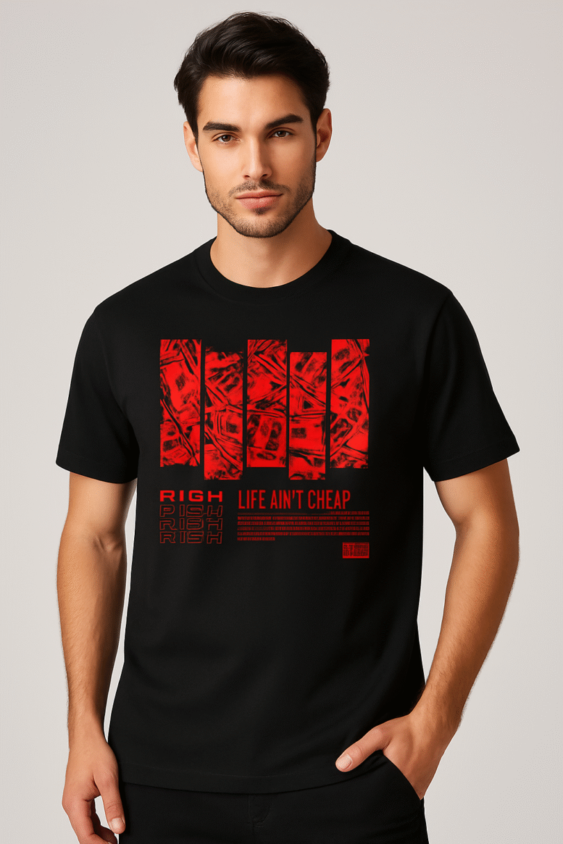 This all-black RICH Tee for men is the definition of cool without trying.
